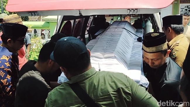 Jenazah kemudian didoakan oleh pihak keluarga sebelum disalatkan untuk selanjutnya dikebumikan di Tempat Pemakaman Umum (TPU) Jagabaya.