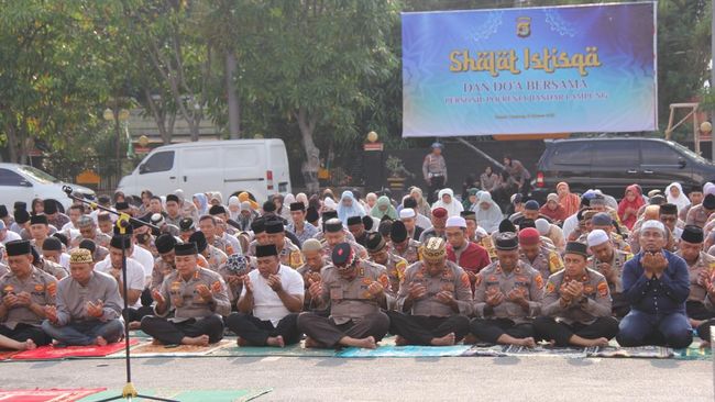 Jajaran Polresta Bandar Lampung melaksanakan salat Istisqa meminta turunnya hujan. Sebab, Lampung saat ini mengalami kekeringan dampak El Nino. Kekeringan juga diikuti dengan kebakaran lahan di berbagai titik.