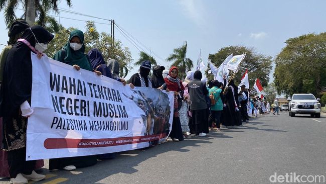 Ratusan massa menggelar aksi bela Palestina di Titik Nol Kota Pangkalpinang, Pulau Bangka. Dalam aksi tersebut, massa menyerukan para pemimpin di negera Islam mengirimkan bantuan tentara ke Palestina.