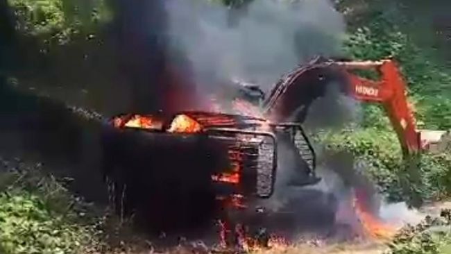 Tiga alat berat ekskavator yang diduga digunakan untuk aktivitas penambangan emas ilegal di Kabupaten Bungo, Jambi dibakar warga. Aksi warga ini menandai masih adanya aktivitas penambangan emas di wilayah Bungo.