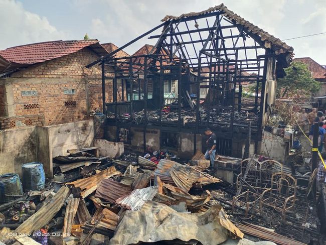 Kebakaran menghanguskan empat unit rumah di pemukiman padat penduduk di Palembang, Sumatera Selatan, merenggut korban jiwa. Seorang warga tewas terpanggang.