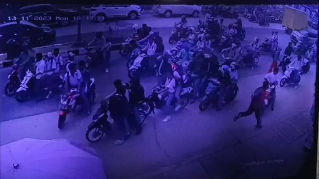 Aksi penyerangan itu terjadi pada Senin (13/11/2023) siang, sekira pukul 11.15 WIB. Para pelajar itu tampak masih mengenakan seragam sekolah.