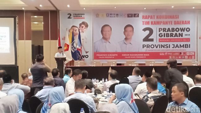 "Di sini kita harus solid harus sama-sama kita bergerak untuk mengambil hati masyarakat (Jambi) memenangkan Prabowo-Gibran di Pilpres. Prabowo-Gibran menang satu putaran," kata dia.