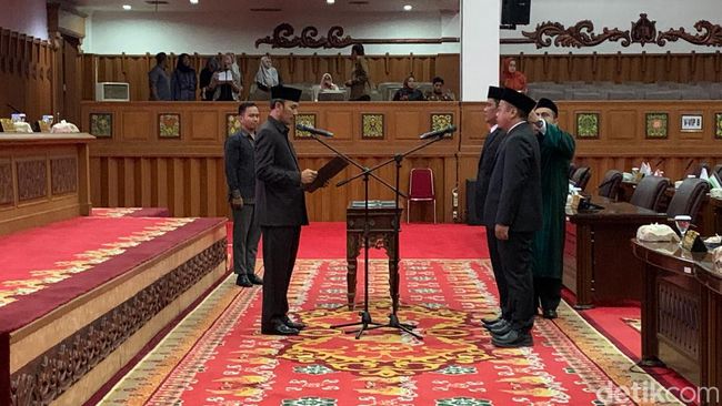 "Dengan dilaksanakan sumpah/janji tadi terhitung sejak hari diambil sumpah ini, Al Mashuri resmi menjadi anggota DPRD Provinsi Jambi pada alat kelengkapan komisi 1 dan Banmus, kemudian Rukiya Alfa Robi menjadi anggota DPRD Provinsi Jambi pada alat kelengkapan dewan Komisi 3 dan Badan Kehormatan," kata Ketua DPRD Jambi, Edi Purwanto, Minggu (17/12/2023).