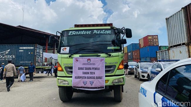 "Proses pengiriman (surat suara) ke Kabupaten dan Kota di Pulau Bangka ini dikawal KPU, Bawaslu dan Kepolisian. Ada 7 kontainer yang berisikan lima jenis surat suara pemilu 2024 yang kita distribusikan dan disaksikan forkominda bersama Bawaslu," kata Ketua KPU Bangka Belitung Husin, Rabu (20/12/2023).