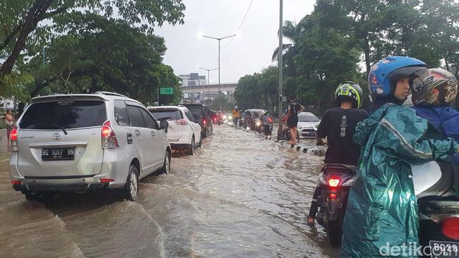 Setidaknya, ada belasan kendaraan yang menepi karena mogok usai melintas di jalan yang banjir tersebut. Sementara pada sisi jalur jalan di sebelahnya tak ada genangan air. Hal itu, lantaran ada pembatas jalan yang membuat genangan dari sisi lain tidak mengalir.