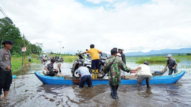 "Untuk tinggi air di atas Jalan Provinsi ini kurang lebih 50 cm. Panjang jalan yang terendam lebih kurang 200 meter," ujar Edi.