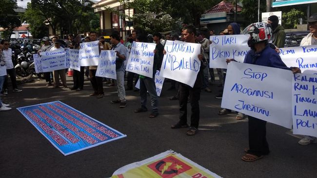 Ratusan massa dari Jaringan Anti Korupsi (Jakor) Sumatera Selatan (Sumsel) mendatangi Kantor Gubernur Sumsel, Jumat (5/1/2024). Mereka meminta Pj Gubernur Sumsel Agus Fatoni untuk tidak memberi izin rotasi jabatan yang akan dilakukan Bupati Kabupaten Ogan Komering Ilir (OKI), Djafar Shodiq jelang berakhirnya masa jabatan pada 15 Januari nanti.