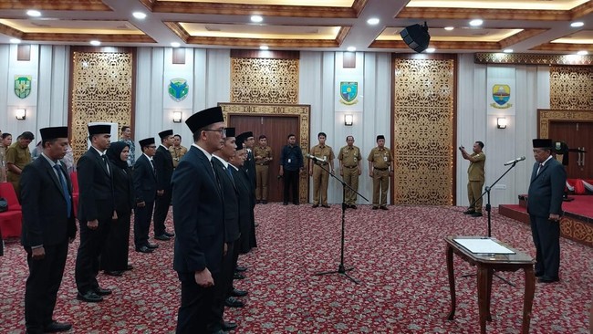 Pelantikan dilaksanakan di Ruang Pola Kantor Gubernur Jambi di Kawasan Telanaipura Kota Jambi, Senin (8/1/2024).