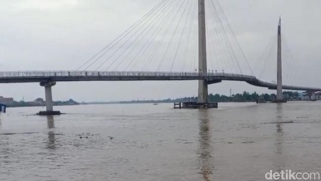 Debit air Sungai Batanghari Jambi semakin meningkat. Ketinggian air sungai terpanjang di Sumatera itu kini sudah di level 14.47 meter dengan status siaga II. Kondisi itu membuat Kota Jambi terancam banjir.