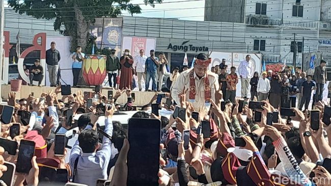 Berdasarkan pantauan detikSumbagsel, Prabowo menaiki kendaraan bak terbuka. Ribuan warga memadati lokasi kunjungan Capres Prabowo, bahkan terdengar teriakan emak-emak yang menyebut kata 'Gemoy', panggilan untuk Prabowo saat tiba di kawasan gedung tersebut.