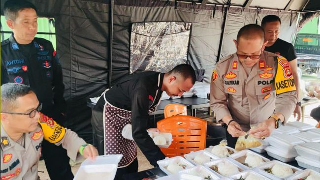 Polisi memberikan 1.000 porsi makanan ke warga karena mereka tidak bisa memasak lantas rumahnya terendam banjir.