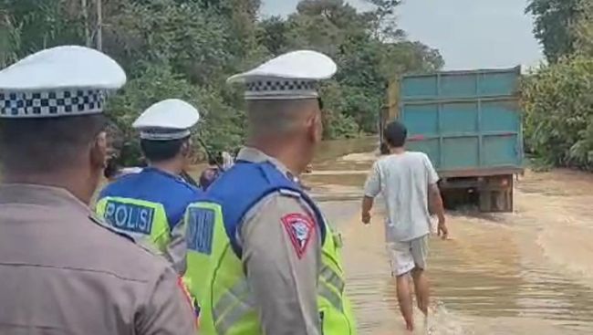 Kasat Lantas Polres Sarolangun AKP Rio Siregar mengatakan meski jalan tersebut terendam, pengendara masih dapat melewati jalan tersebut.