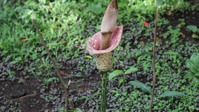 Tanaman yang memiliki nama lain Titan Arum ini termasuk jenis talas-talasan yang terkenal sebagai bunga raksasa di dunia. Julukan tersebut terbukti dengan ketinggian yang dicapai sekitar 3 meter dengan ukuran kelopak bunga 1,5 meter.