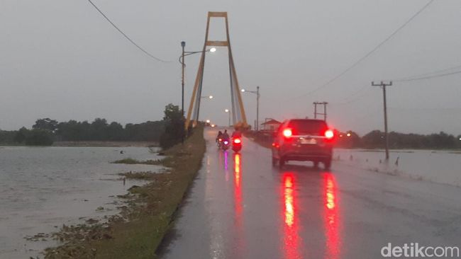 "Dengan air yang tinggi ini menggenangi sisi jalan ini, kami khawatirkan membuat kendaraan tak bisa melihat jalan jadi kami imbau untuk berhati-hati," ungkapnya.