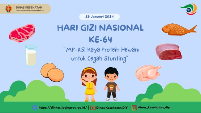 Dilansir dari website resmi Dinas Kesehatan Provinsi Yogyakarta, Hari Gizi Nasional tahun 2024 mengusung tema "MP-ASI Kaya Protein Hewani Cegah Stunting" dengan slogan "MP-ASI Berkualitas untuk Generasi Emas".