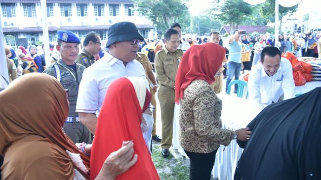 Ribuan warga memadati halaman Kantor Bupati Bangka, Provinsi Bangka Belitung (Babel) sejak pagi untuk berburu sembako murah. Sebanyak 2.300 paket sembako murah yang disiapkan Pemkab Bangka pun ludes.
