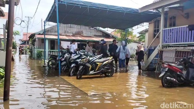 Pantauan detikSumbagsel di beberapa TPS Kota Palembang yang kebanjiran. Salah satunya di Jalan Sido Ing Lautan, Kelurahan 35 Ilir, Kecamatan Ilir Barat II, Palembang. Banjir sebatas betis orang dewasa atau sekitar 50 centimeter.