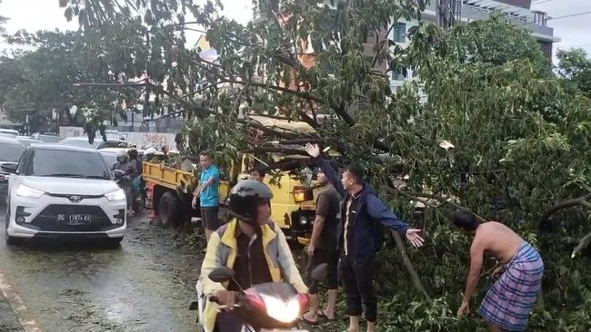 Simak Video "Video: Pohon Tumbang Timpa 2 Mobil di Tol Cikampek Arah Halim"