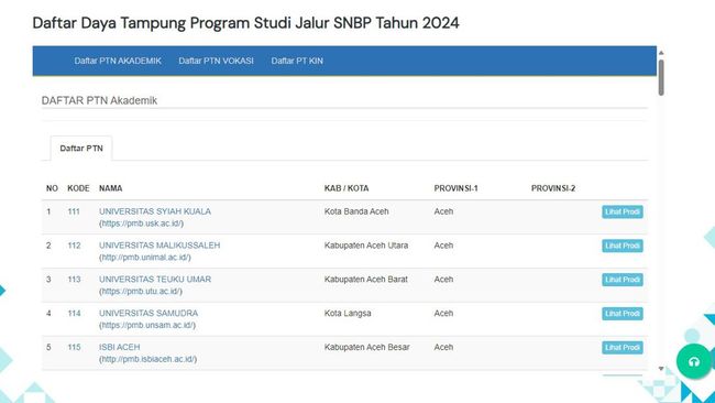 Simak daftar kampus atau PTN SNBP 2024 meliputi akademik, vokasi hingga keagamaan Islam yang dihimpun detikSumbagsel dari situs SNPMB Kemendikbud.