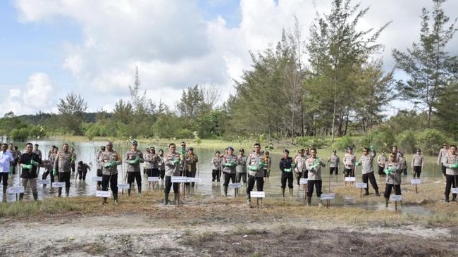 Sebanyak 2.700 jenis batang pohon ditanam di lokasi bekas tambang timah ilegal di wilayah Bangka Belitung (Babel). Penghijauan ini dilakukan Polda Babel dan Polres jajaran dengan tujuan mencegah terjadinya abrasi dan kerusakan lingkungan.