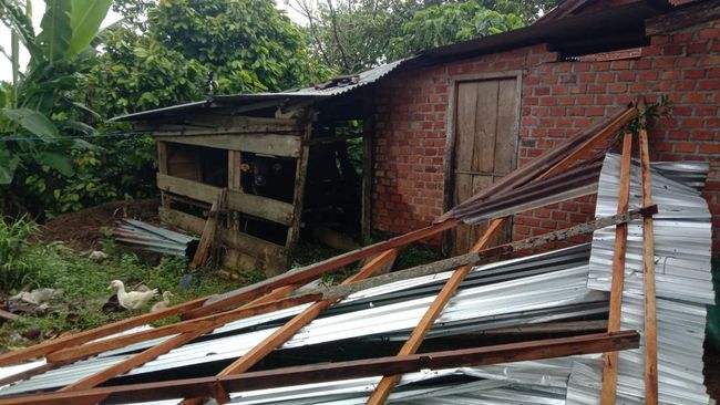 "Hanya rumah milik Miskidi yang terkena dampak puting beliung. Atap rumah milik Miskidi dari seng dan kerangka kayu terbang. Dinding rumah dari semen, batu bata runtuh sebagian," katanya.