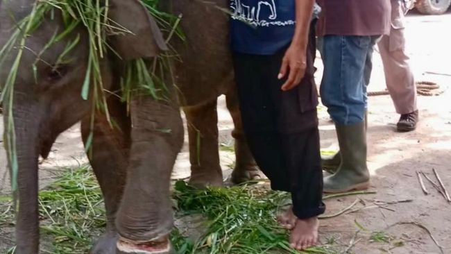 "Pertama kali itu warga melihat anak gajah ini berjalan di area tersebut dalam keadaan pincang. Kemudian diamati kakinya mengeluarkan darah, dari sana warga melaporkan ke kami," jelasnya.