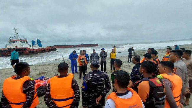 "Kapal Titan 33 beserta tongkang yang kebetulan berada di perairan Lentera Merah dihantam badai sehingga kapal dan beserta tongkang terdampar ke pinggir," kata Wahyu, Jumat (8/3/2024).