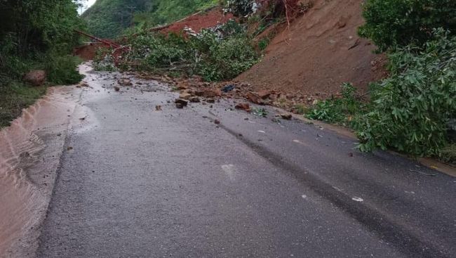 Akses jalan nasional di Jambi penghubung Kabupaten Merangin dan Kabupaten Kerinci tertimbun longsor. Akibatnya, kendaraan tak bisa melewati jalan tersebut sehingga lalu lintas lumpuh.