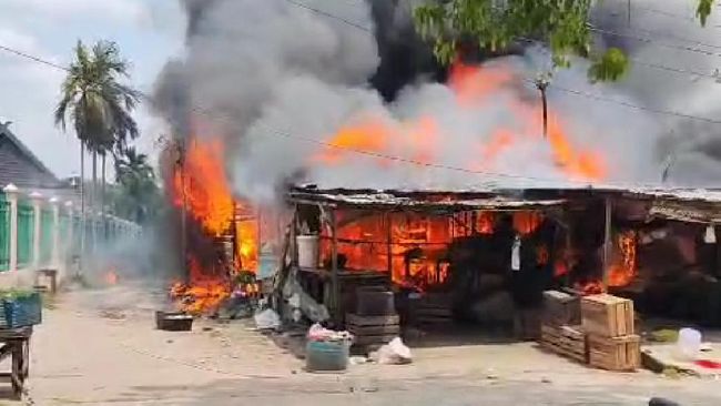 Sebuah kios penjual sembako dan makanan takjil Ramadan di kawasan Buluran, Kecamatan Telanaipura, Kota Jambi ludes terbakar api. Dugaan sementara kebakaran hebat itu diakibatkan korsleting listrik.