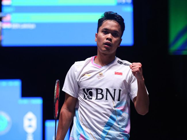 Tunggal putra Indonesia, Anthony Sinisuka Ginting, melaju ke final All England 2024 usai menumbangkan wakil Prancis, Christo Popov, Sabtu (176/3/2024). Ginting sempat tertinggal, tapi berhasil comeback.