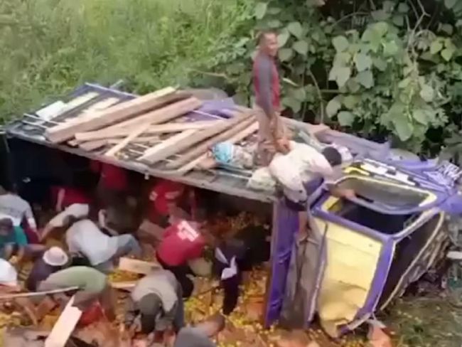Dalam video yang dilihat detikSumbagsel, tampak ada puluhan warga memilah muatan jeruk dan memasukkannya ke dalam kantong kresek masing-masing. Sementara, kondisi truk tampak ringsek dan terbaring di dalam jurang dan sopir dan penumpang sudah dievakuasi.
