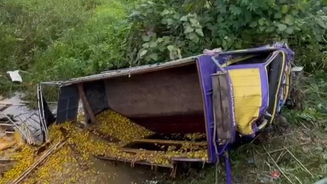 Diberitakan sebelumnya, truk muatan buah jeruk terguling di jurang Jalan Lintas Jambi-Muara Bulian, Desa Lopak Aur, Pemayung, Kabupaten Batanghari, Jambi. Akibatnya, sopir mengalami patah kaki, sementara warga berbondong-bondong mengambil muatan jeruk.