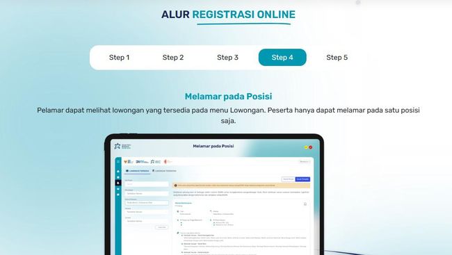 Terdapat beberapa tahapan untuk melakukan proses registrasi online. Berikut langkah-langkah yang perlu dilakukan pelamar: