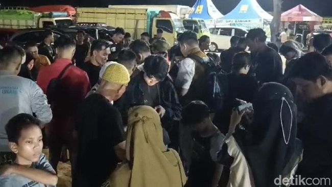 Pantauan detikSumbagsel, Jumat (5/4/2024) dini hari, tampak puluhan kendaraan pemudik menumpuk di areal parkir Tanjung Kalian Mentok. Selain pemudik terpantau kendaraan truk pengangkutan juga ikut mengantre.
