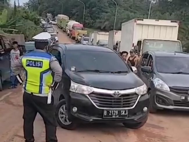 Sebelumnya, Kemacetan mengular hingga 20 meter terjadi di Jalinsum Palembang-Betung, Banyuasin, Sumatera Selatan. Polisi pun berjibaku mengurai kemacetan yang didominasi kendaraan asal luar Sumsel.