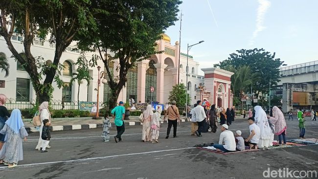 Pantauan detikSumbagsel, Rabu (10/4/2024) pagi, jemaah sudah mulai datang ke Masjid Agung Palembang dan memasang koran untuk Salat di seputaran bundaran air mancur Masjid Agung.