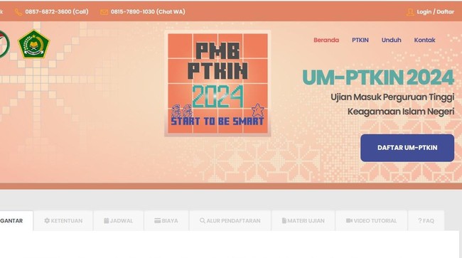 Pendaftaran Ujian Masuk Perguruan Tinggi Keagamaan Islam Negeri (UMPTKIN) 2024 resmi dibuka pada tahun ini. Bagi lulusan Sekolah Menengah Atas (SMA) sederajat sudah bisa mengecek jadwal pendaftarannya. Berikut detikSumbagsel rangkum jadwal pendaftaran beserta ketentuannya.