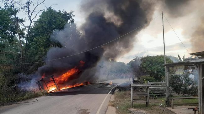 Insiden mobil pikap pengangkut BBM terguling terjadi di Musi Banyuasin, Sumatera Selatan, membuat heboh. Akibat tumpahan minyak dari pikap tersebut, 1 unit truk dan 2 rumah warga hangus terbakar.