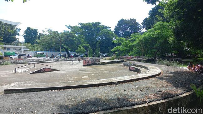 Tempat ini dulu sangat ramai dikunjungi berbagai kalangan muda-mudi sebagai taman bermain sepeda, skate, sepatu roda, atau sekedar nongkrong kini tampak memprihatinkan.