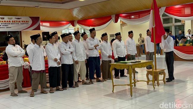 Langkah ini menjadi pembuktian bagi mereka untuk serius meninggalkan segala bentuk aktivitas terorisme. Pengucapan ikrar setia NKRI dilakukan di Kantor Bupati Batanghari, Jambi, Selasa (30/4/2024).