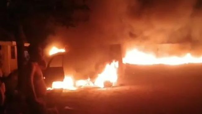 Dari beberapa foto dan video yang diterima detikSumbagsel, terlihat beberapa kendaraan hangus terbakar. Di lokasi juga tampak beberapa rangka besi tandon juga hangus.