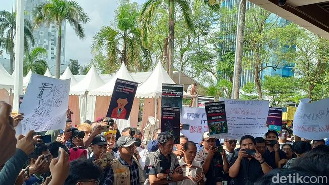 Dilihat detikSumbagsel di lokasi, puluhan wartawan membentangkan poster dan spanduk berisi tuntutan. Beberapa poster dan spanduk tersebut di antaranya 'Hentikan Pembahasan UU Kontroversi di Akhir Jabatan', 'RUU Penyiaran sama Halnya kembali ke Orde Baru, Jangan Hambat Kebebasan Pers' dan spanduk besar bertuliskan Tolak RUU Penyiaran.