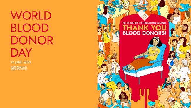 Hari Donor Darah Sedunia diperingati setiap tahun pada tanggal 14 Juni di berbagai negara. Tahun 2024, peringati ini mengusung tema 20 Years of Celebrating Giving: Thank You, Blood Donors!