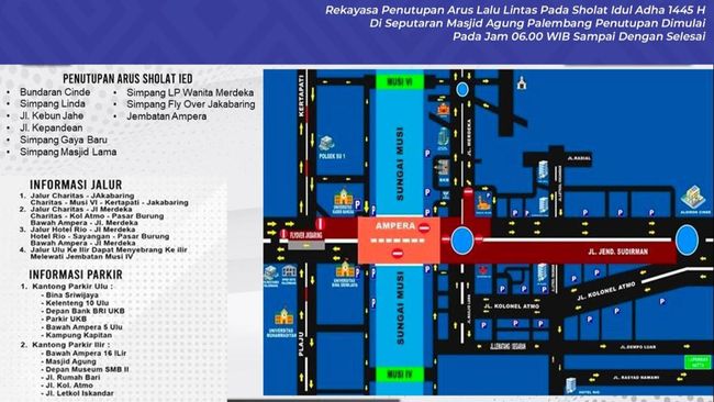 Kasat Lantas Polrestabes Palembang, AKBP Yenni Diarty mengatakan penutupan akan dimulai pukul 06.00 WIB hingga selesai salat Id.