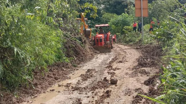 Saat ini, kondisi pembersihan tanah longsor sudah selesai dikerjakan. Kendaraan sudah bisa melintas, termasuk mobil sudah bisa melalui jalan tersebut.