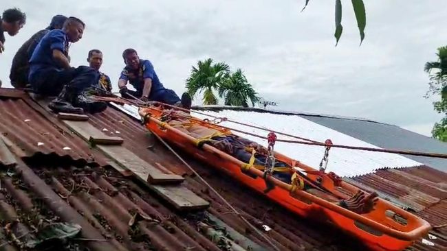 "Ketika diatas atap itu warga yang sakit ini tak bisa bergerak kan cuma bisa teriak. Lalu keluarga meminta tolong masyarakat sekitar tetapi karena tidak punya alat memadai maka kita dihubungi dan kita bantu evakuasi," terang Mustari.