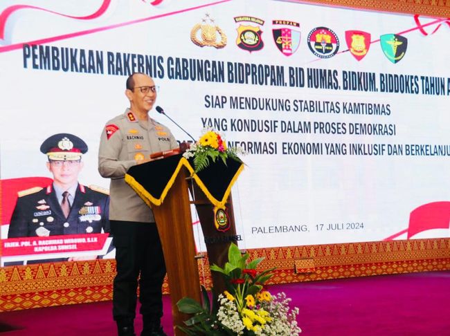 Kapolda Sumsel Irjen A Rachmad Wibowo membuka rapat kerja teknis (Rakernis) gabungan beberapa bidang. Dalam rapat tersebut, Kapolda menekankan antisipasi musim kemarau dan potensi Karhutla.