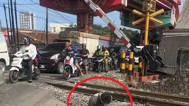 Beruntung nyawa pemuda bernama Edwin ini masih selamat. Dalam video yang diterima detikSumbagsel, terlihat dirinya terduduk di samping perlintasan.