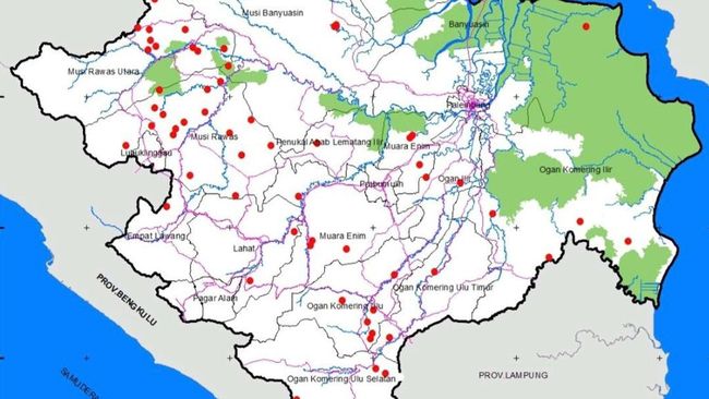 Dari 282 hotspot, wilayah paling banyak ada di Musi Banyuasin (Muba) dengan 64 hotspot, Muara Enim 54 hotspot, Musi Rawas (Mura) 41 hotspot, Musi Rawas Utara (Muratara) 25 hotspot.